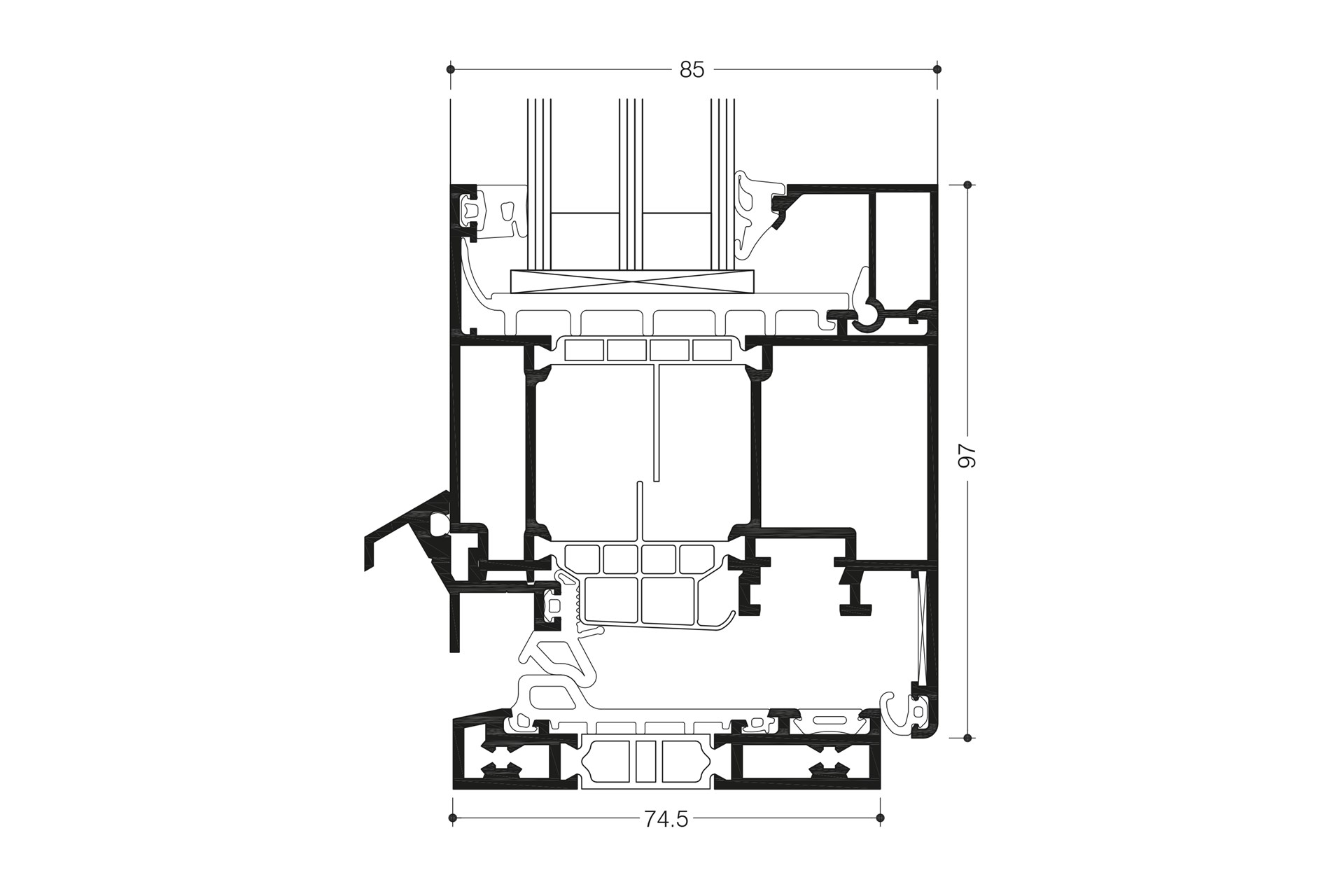 • Hoch wärmegedämmtes Mehrkammersystem mit symmetrischem Aufbau, qualitätsgesichert im Werksverbund hergestellt