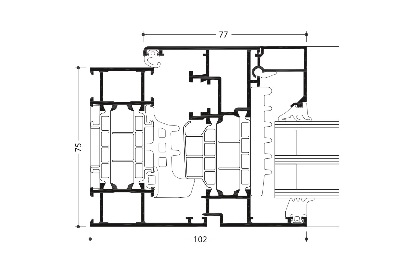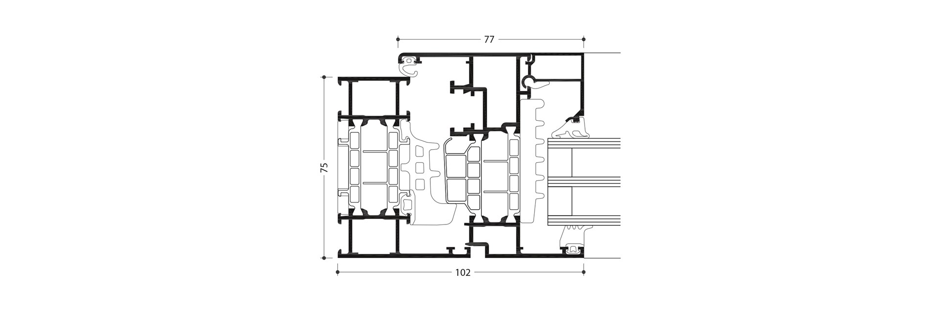 - Hoch wärmegedämmtes Mehrkammersystem mit ETC Intelligence® Verbundzone, welche Fensterkonstruktionen mit nur 75 mm Blendrahmentiefe auf Passivhaus-Niveau realisiert.