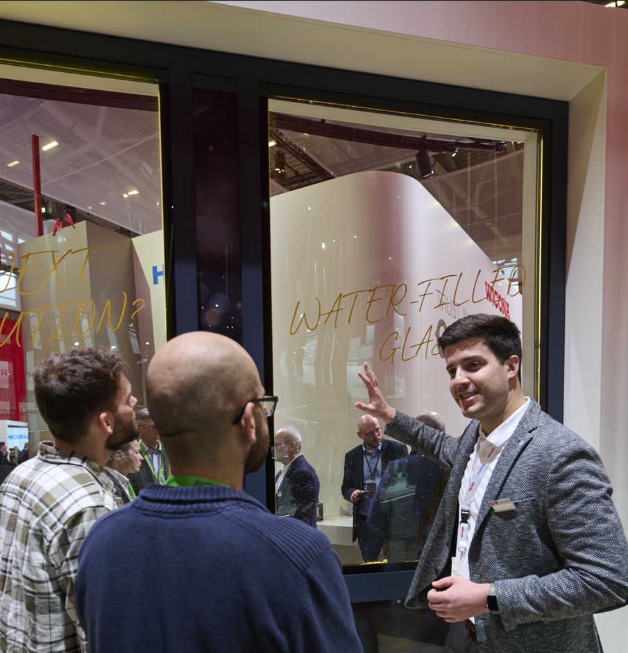 Another highlight was the TEmotion NG façade solution, developed in collaboration with Water-Filled Glass Ltd. The core element of this project study is insulating glazing with a circulating water layer, which positively impacts solar heat gain. This revolutionary approach enables significant energy savings and paves the way for CO₂-neutral façades—or even climate-positive ones when combined with building-integrated photovoltaics.