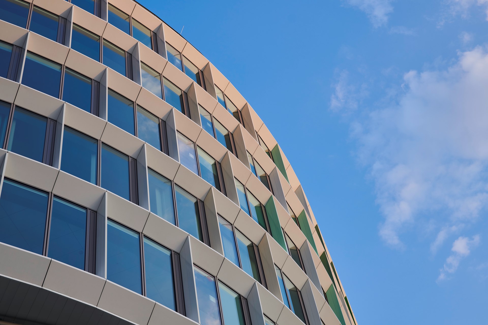 The entire building, including the façade design, was planned digitally using Building Information Modelling (BIM). The shape of the building in particular was optimised again and again in numerous simulations. Miklós Balaskó, Project Manager of Paulinyi & Partners Zrt. explains: "The floor plan and façade geometry were determined following extensive wind simulations and taking into account all environmental conditions. To determine the shape and colour of the vertical louvres integrated into the façade, we took into account the amount of daylight and the position of the sun. This enabled us to achieve maximum energy efficiency." This is certainly also a reason why the building has already received the renowned BREEAM certification.