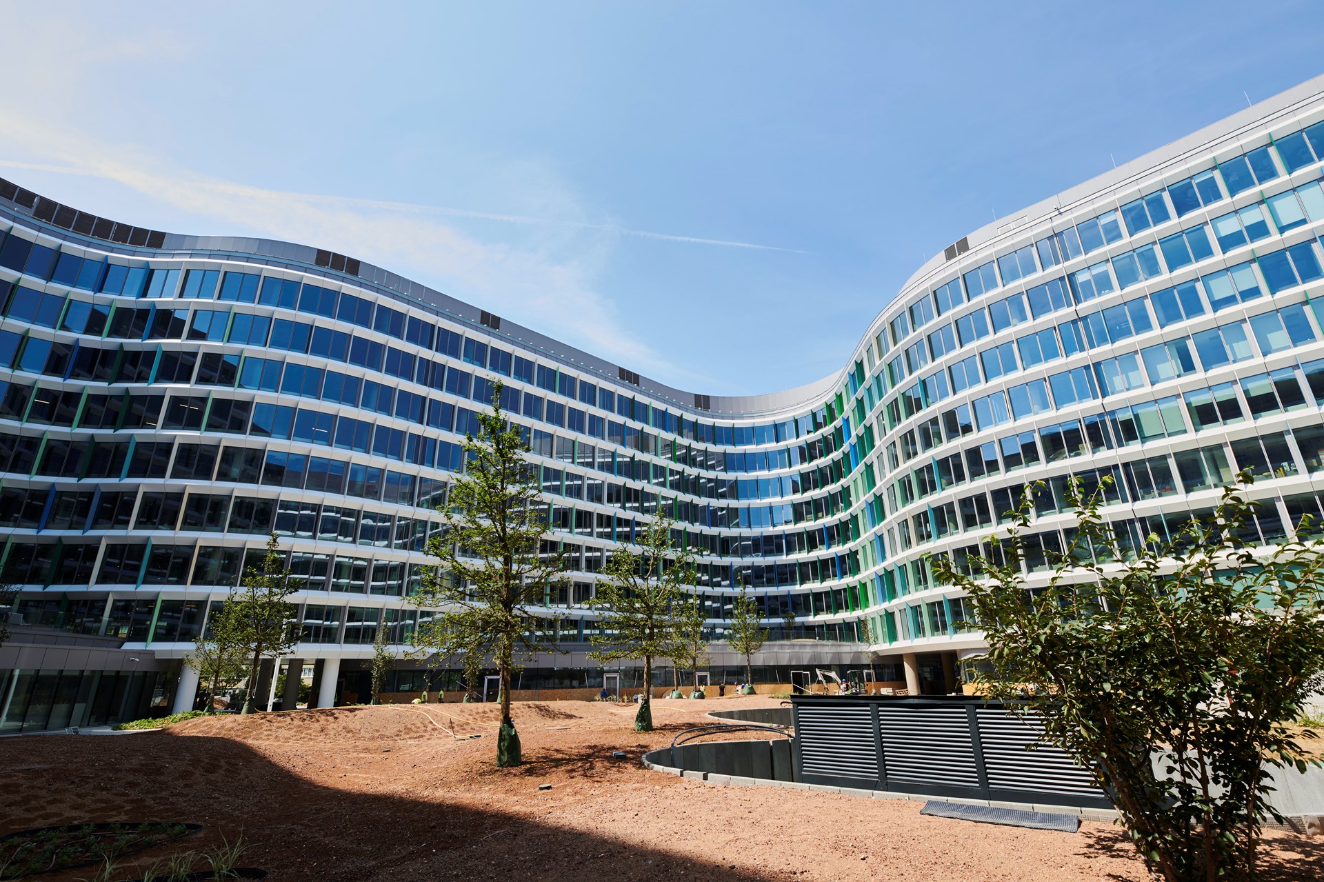 In the southwest of Budapest, the impressive new South Buda City Center was recently completed on the 26-hectare Kelenföld site. The extensive investment project of the internationally operating Futureal Group at Hungary's largest transport hub includes not only comprehensive measures in the area of transport infrastructure, but also the construction of the modern Etele Plaza shopping centre and the striking Budapest ONE building complex. With more than 66,000 square metres of space, the 9-storey new building offers state-of-the-art office space for 7,000 employees as well as numerous retail outlets on the ground floor. The building, designed by the architectural firm Paulinyi & Partners Zrt. (Budapest), blends harmoniously into its surroundings and the neighbouring residential area with its undulating silhouette. In the inner courtyard there is a 0.5 hectare public open space with a wide green area as well as a fountain – an ideal place to linger.