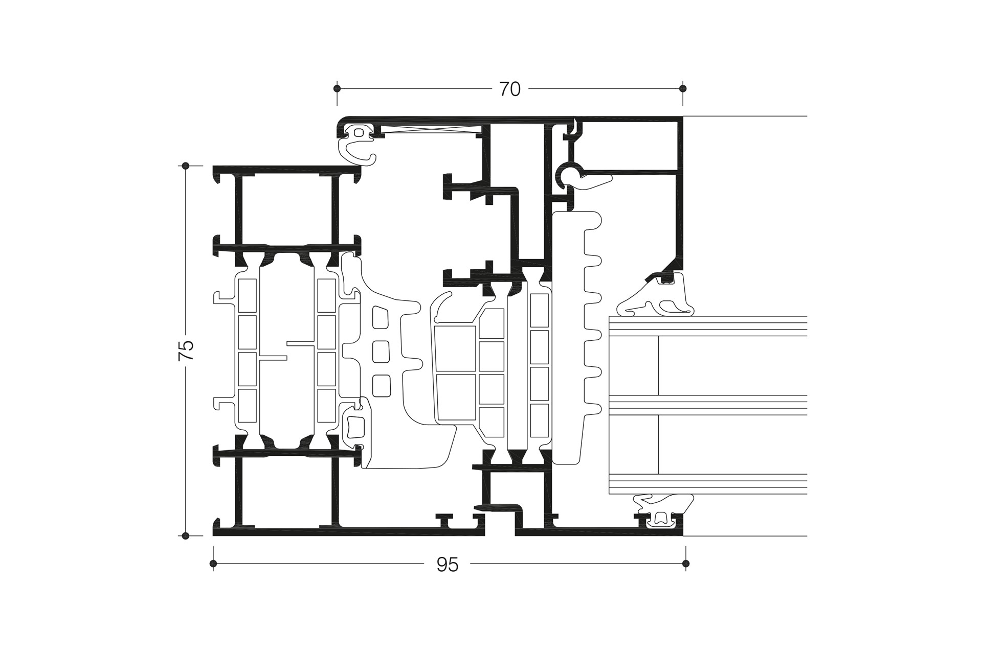 - Módulo de 75 mm con sistema de perfil multicámara de alto aislamiento.