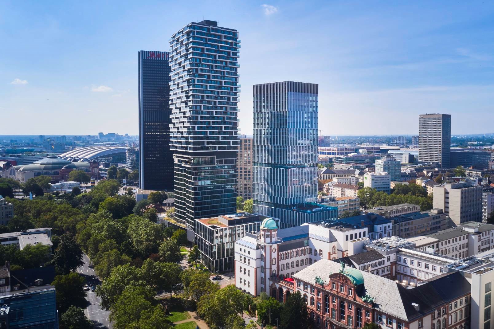 Una de las características más significativas de este nuevo rascacielos, que cuenta con 106 metros de altura y 25 plantas, es que dispone de los más altos estándares internacionales de calidad en la construcción de gran altura combinados con una construcción eficiente y sostenible, sobre todo debido a su innovadora fachada WICONA realizada con aluminio reciclado certificado Hydro CIRCAL. Tras la clásica fachada lineal se esconde un edificio que incorpora los más altos estándares internacionales en la construcción contemporánea de rascacielos. Destaca su zócalo trapezoidal de 23 metros de altura, coronado por una terraza ajardinada con excelentes vistas a Frankfurt.
