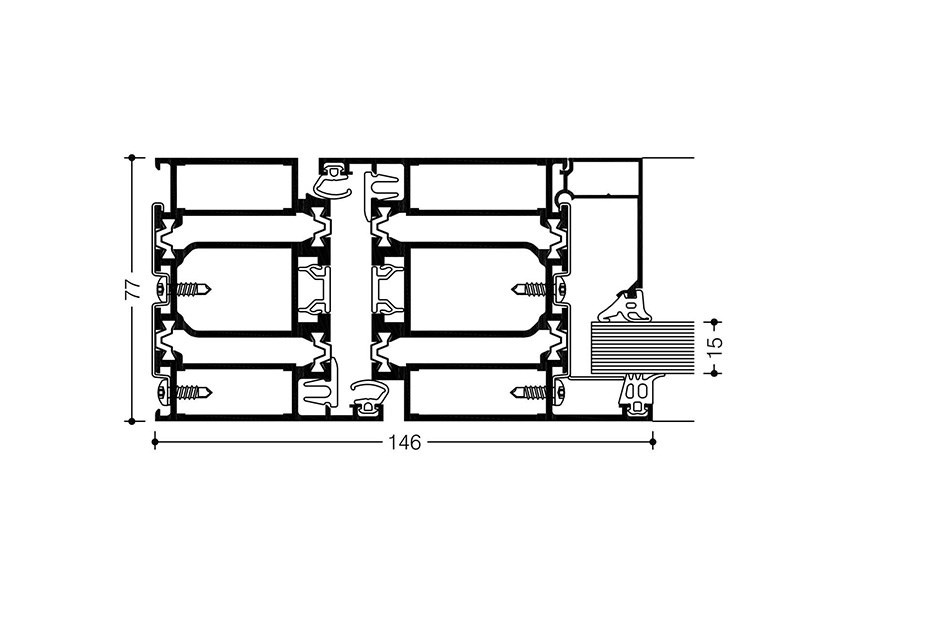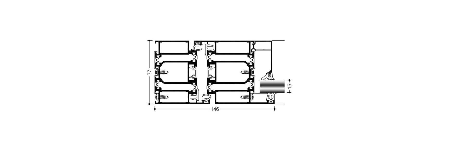 - 2 vantaux : jusqu'à L 2 538 mm x H 2 510 mm - Drainage visible