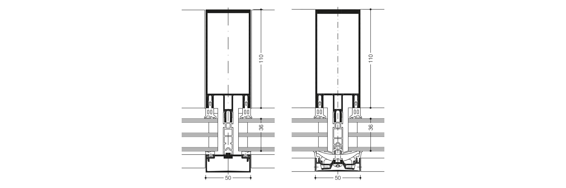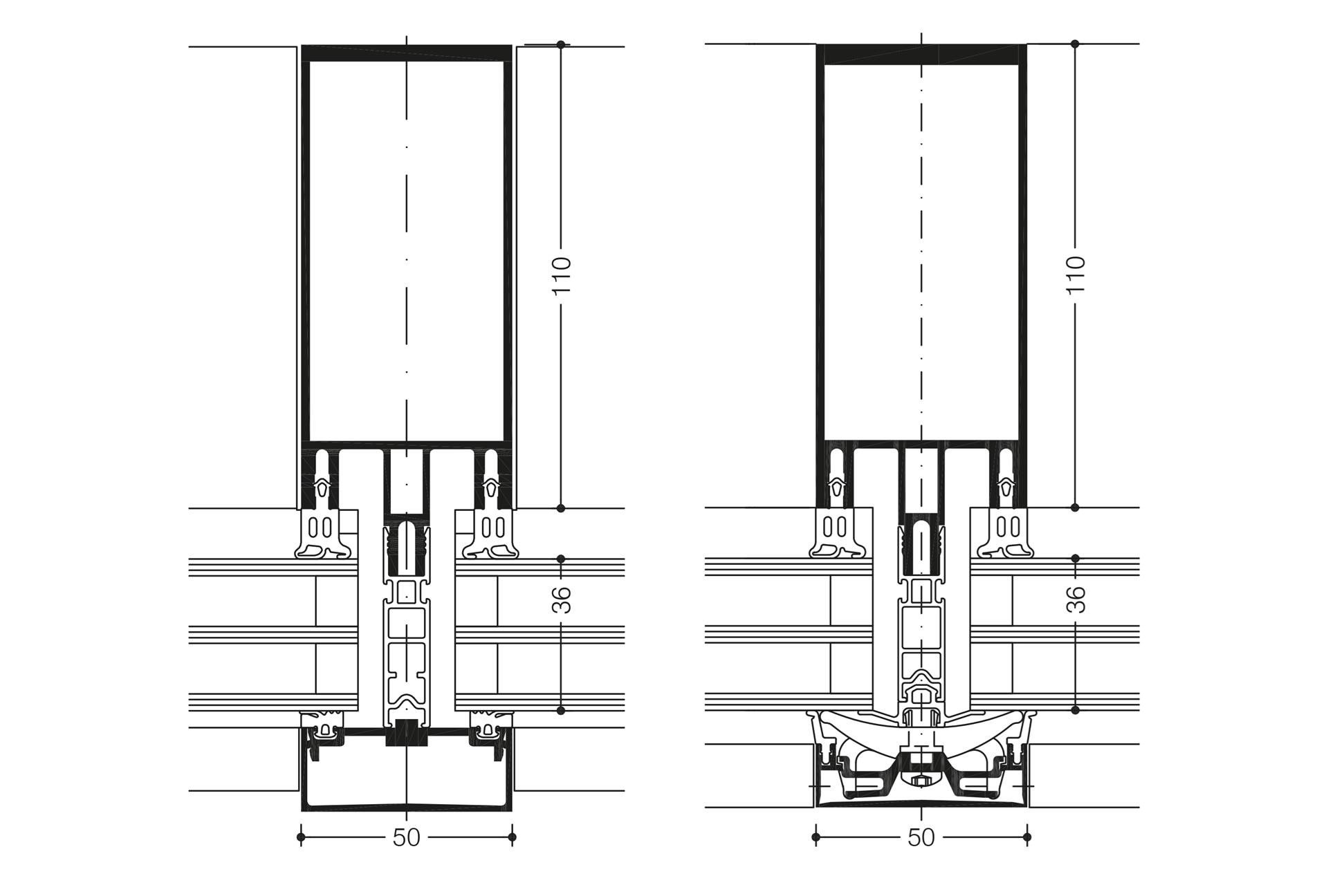- Transmission sécurisée de la charge due au vitrage (jusqu’à 5,6 kN), faisant appel à une technologie traverse-joint adéquate