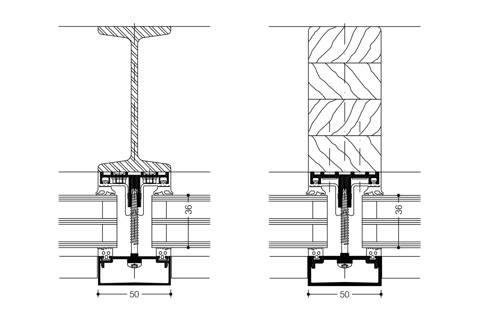 - Libre choix des matériaux (acier ou bois), pour des largeurs de profilés à partir de 50 mm
