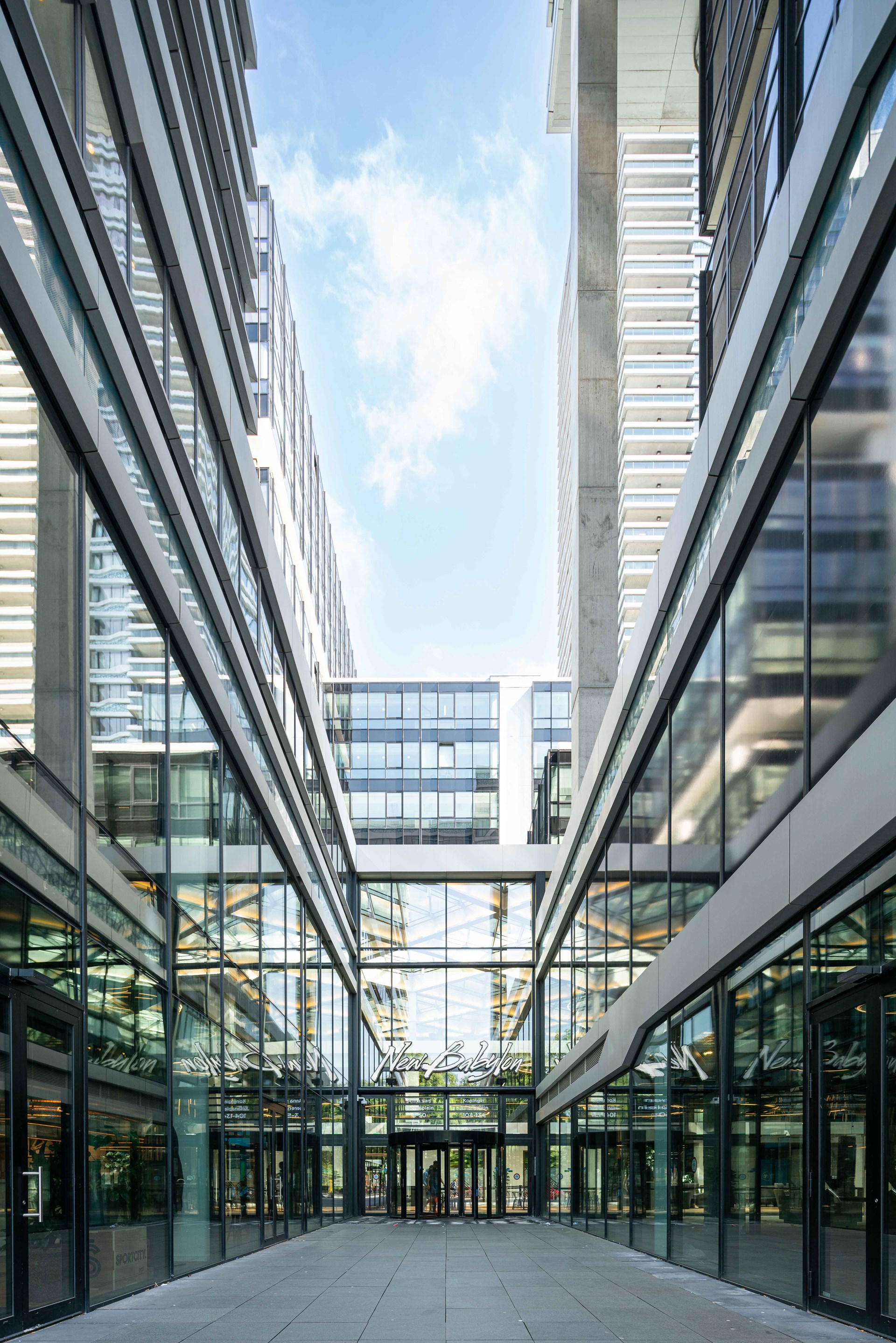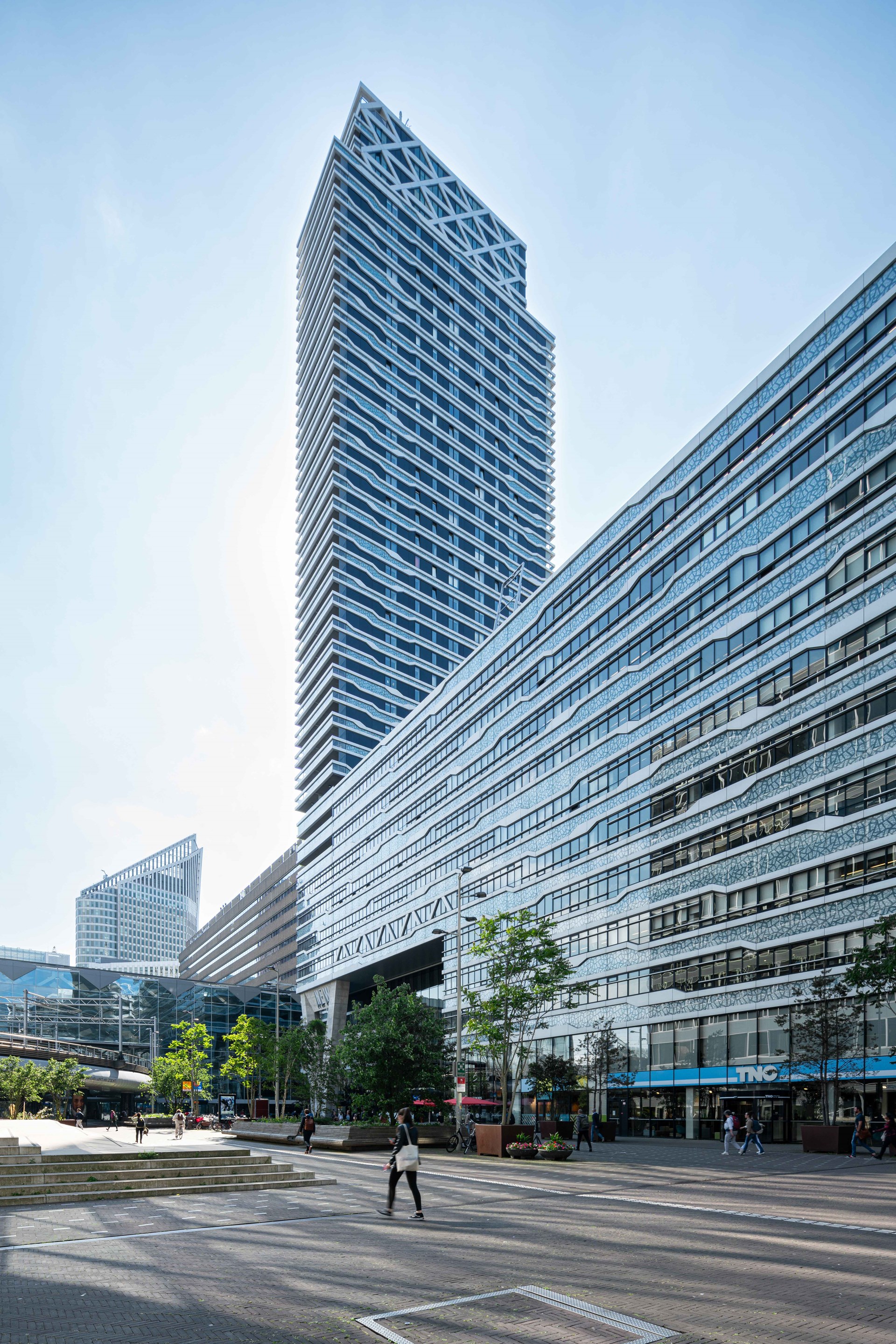 À La Haye, l’immeuble New Babylon constitue un parfait exemple d’intégration réussie entre habitat, travail et détente. Outre deux impressionnantes tours résidentielles comptant au total 335 habitations, le bâtiment abrite des bureaux, un hôtel, des restaurants, des cafés, des boutiques, un cinéma et un parking souterrain de 1 260 places. Pourtant, l’aspect le plus spectaculaire de ce projet réside dans sa façade composée d’éléments en aluminium, qui enlace le bâtiment existant au sens propre comme au figuré.