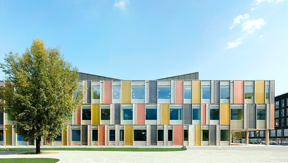 Le centre scolaire de Horw, un bâtiment en acier des années 1970, ne répondait plus aux exigences en termes d’espace, d’enveloppe climatique, d’automatisation, de sécurité incendie, etc. À présent, le bâtiment entièrement rénové et agrandi est conforme à la norme Minergie, notamment grâce au système innovant de façade à cavité fermée WICTEC Modul air.