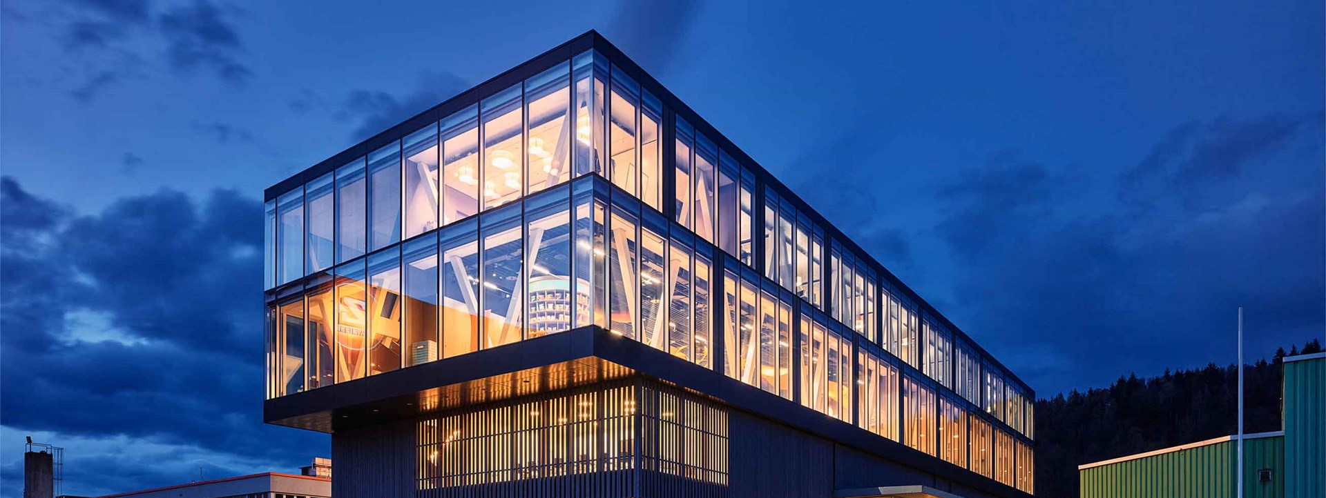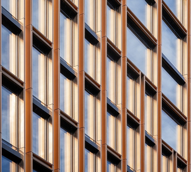 Afin d’assurer une qualité élevée des espaces intérieurs, l’enveloppe du bâtiment requiert de grandes surfaces vitrées et des profilés aussi minces que possible afin d’obtenir une transparence maximale. En outre, le système de façade devait répondre à des exigences élevées en termes de durabilité et d’efficacité énergétique, tout en fournissant une protection solaire, climatique et phonique convaincante.