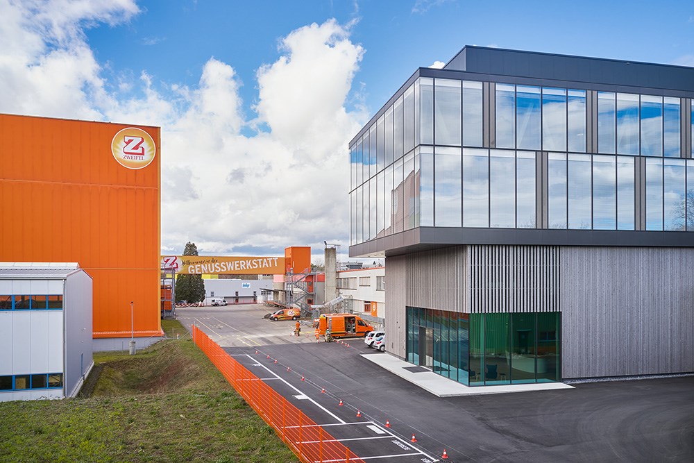 L’entreprise familiale suisse Zweifel Pomy-Chips AG a décidé d’agrandir son site de production de chips de pommes de terre en lui adjoignant un nouveau bâtiment de bureaux et de services. En plus de créer davantage d’espace pour les bureaux et pour la recherche et le développement, le nouveau bâtiment abrite également une cantine pour le personnel et un centre d’accueil des visiteurs.