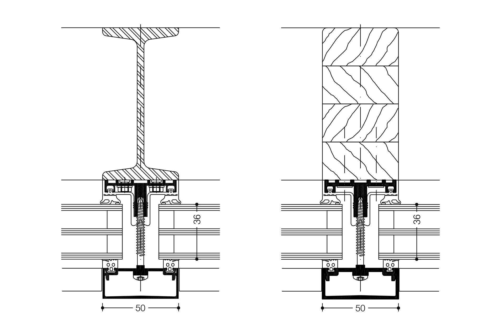 I visse tilfeller vil det av hensyn til statikk eller estetikk være en fordel å utføre fasaden i kombinasjon med en primær bærestruktur i treverk eller stål. WICTEC 50A har alle systemtekniske fordeler, men uten innvendige hulprofiler. Dermed kan profilene monteres direkte på en bærekonstruksjon i annet materiale samtidig som det ytre uttrykket fremstår som et ordinært WICTEC 50 system.