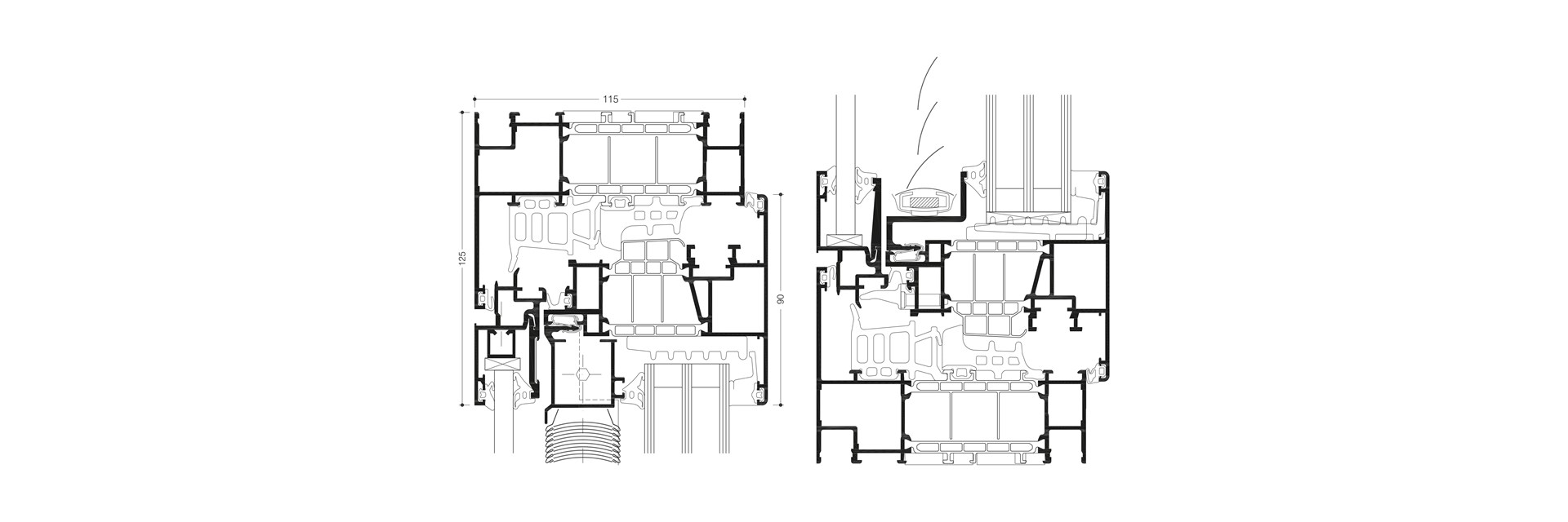 WICLINE 115 AFS fönstersystem kombinerar en interiör fönsterbåge med en exteriör, vilket skapar en isolerspalt mellan bågarna. Konstruktionen ger en väsentlig förbättring av systemets termiska och ljudisolerande prestanda - helt utan tilläggsisolering.